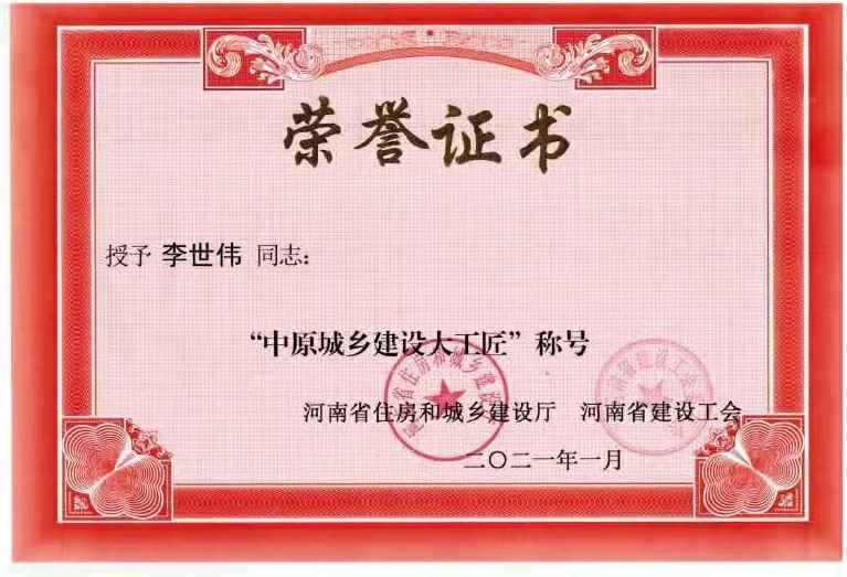 开云手机站登录官网入口-开云online(中国)李世伟同志获“中原城乡建设大工匠”称号